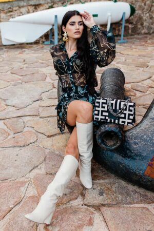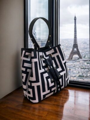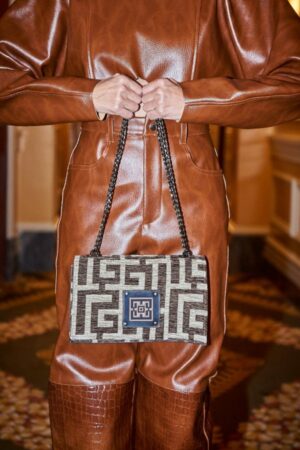 Midneto Delos Beige Black Chenille Labyrinth Bag