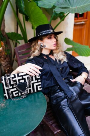 Midneto Clio Black Beige Labyrinth Bag