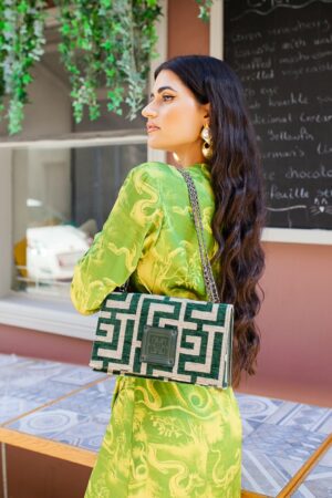 Midneto Cypress Green Beige Chenille Labyrinth Bag