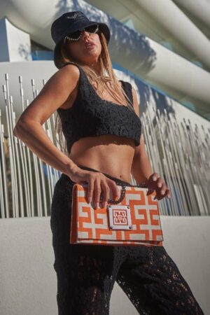 Midneto Delos Beige Orange Labyrinth Bag