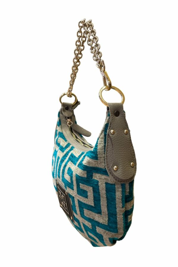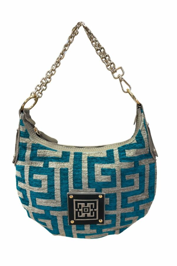 Midneto Iris Turquoise Beige Chenille Labyrinth Bag